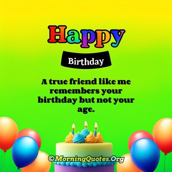 A true friend like me remembers your birthday but not your age. – Happy Birthday!