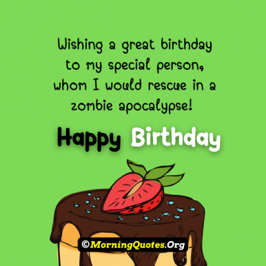 Wishing you a great birthday to my special person, whom I would rescue in a zombie apocalypse! – Happy Birthday!