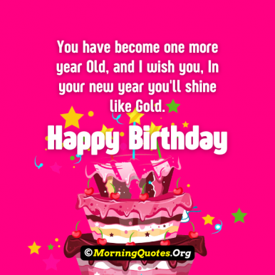 You have become one more year Old, and I wish you, In your new year you’ll shine like Gold. – Happy Birthday!